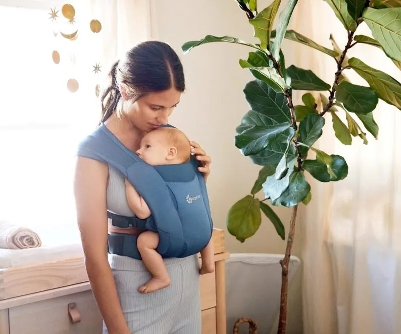 Удобната носилка за новороденчиња Embrace е одговор на Ergobaby по барање на родителите за мека и удобна, а поедноставна опција за носење на новороденче од марама.